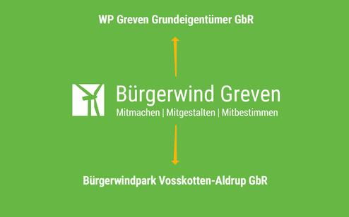 Die Betreibergesellschaft der künftigen Windparks, die "Bürgerwind Greven GmbH & Co. KG", ist ein Zusammenschluss der "Bürgerwindpark Vosskotten-Aldrup GbR" und der "WP Greven Grundeigentümer GbR". Die "Bürgerwind Greven GmbH & Co. KG" wurde am 20.05.2014 gegründet und bündelt die beiden Grevener Windenergiepotenzialgebiete in einer Gesellschaft.